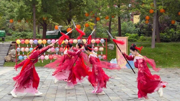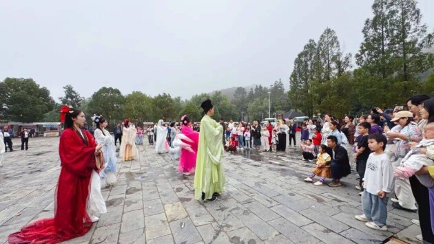 此外,《凤鸣朝阳》《山海灵韵》《哪吒闹海》等神话主题舞蹈轮番上演,舞者身着华服,在秋日晴空下演绎上古传说,引得游客纷纷举起手机记录精彩瞬间。