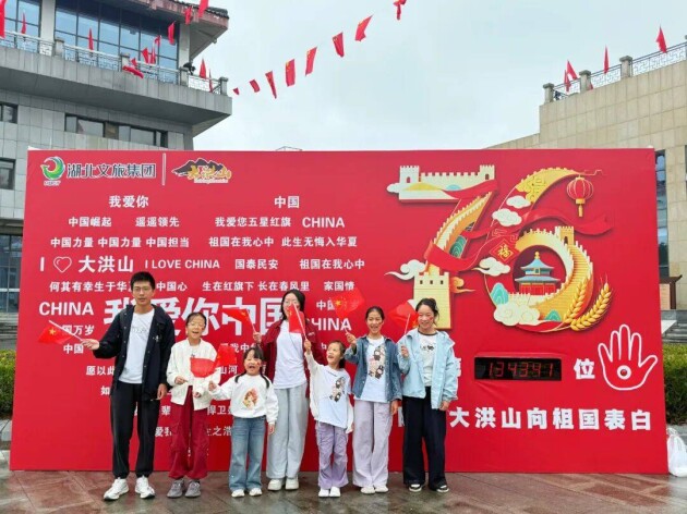 国庆黄金周首日,大洪山风景区便以浓厚的节日氛围迎接游客。游客中心门口的国庆打卡墙成为热门拍照点,“我爱你中国”“此生无悔入华夏”等标语与飘扬的国旗相映成辉,吸引众多游客驻足留念。来自武汉的张先生一家表示:“这样的打卡点不仅让孩子感受到爱国情怀,也为全家留下了珍贵的节日记忆。”