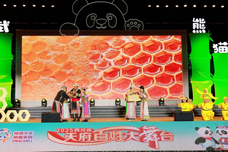 10月10日晚,由四川省文化和旅游厅、绵阳市人民政 府主办,四川省文化馆、绵阳市文化广播电视和旅游局、平武县人民政 府承办,绵阳市文化馆协办的2025年四川省“天府百姓大舞台”绵阳遂宁广元片区汇演活动在绵阳市平武县白马藏族乡精彩上演,本次活动也得到遂宁市文化广播电视体育和旅游局、广元市文化广播电视和旅游局的大力支持。来自绵阳、遂宁、广元的群众演员带着自编自导的节目登上舞台,充分展现了文化惠民工程在基层结出的丰硕成果,为“锦绣天府·安逸四川”建设注入了蓬勃的群众文化活力。