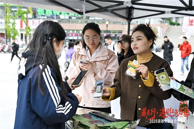在成都大学新空间广场,昌都文旅设置的路演展位以其精美的文创产品与手工艺品吸引了大量学生驻足。为增强互动体验,现场准备了富有昌都特色的小礼品,鼓励学生参打卡关注活动,有效提升了昌都文旅新媒体矩阵在青年群体中的认知度。随后的文旅推介会上,近百名学生踊跃报名,有奖问答积极参与,在轻松愉快的互动中,同学们不仅加深了对昌都自然风光与红色文化的理解,更在校园中播下了关注藏东、向往昌都的文化种子,为昌都文旅在青年群体中的长效传播培育了新生力量。